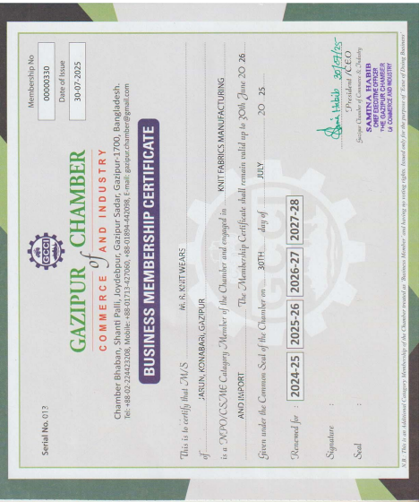 Knowing MR Knitwears is certified gives us peace of mind. Their products always meet our expectations.